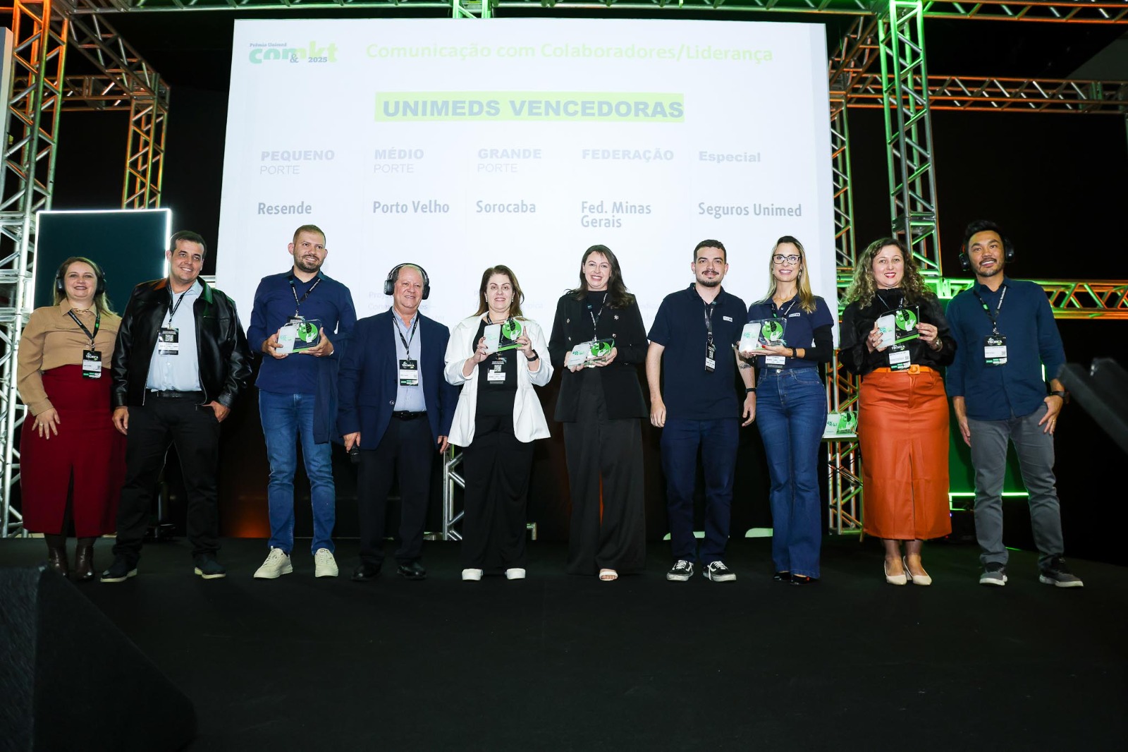 Durante o evento, foi realizada a entrega dos Prêmios de Comunicação & Marketing; Ouvidoria de Excelência; e Jeito de Cuidar, que reconheceram as melhores práticas e iniciativas dos setores. A Unimed Ferj parabeniza todas as Unimeds do estado do Rio de Janeiro pela participação, demonstrando o compromisso contínuo com a qualidade e a inovação. Destaque para as Unimeds Barra Mansa, Cabo Frio, Centro Sul Fluminense, Nova Iguaçu e Resende, que conquistaram prêmios nas categorias de médio e pequeno porte. O reconhecimento de suas ações reflete a dedicação, o comprometimento e a inovação de suas equipes, que se destacaram com boas práticas e um trabalho excepcional.