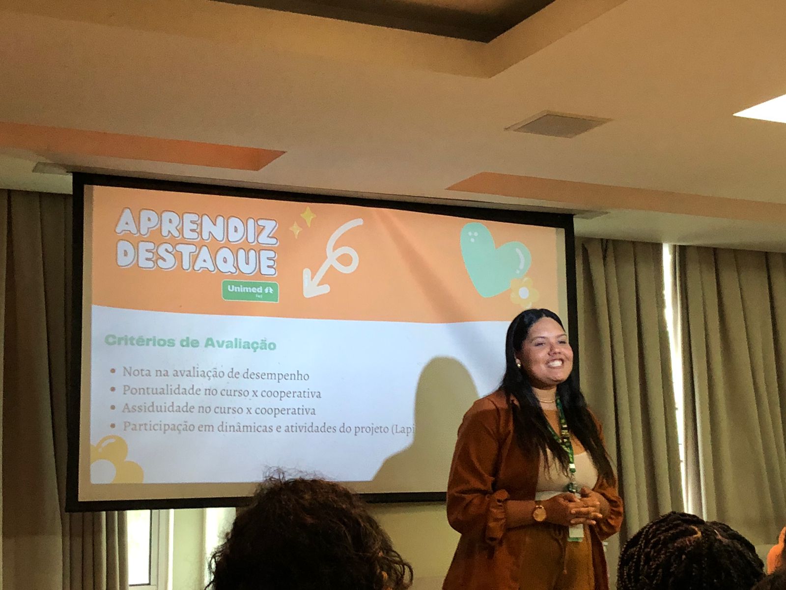 Na ocasião, foi realizada uma dinâmica de autoconhecimento, baseada na Roda da Vida, além de apresentar o propósito do projeto, que visa não só o desenvolvimento profissional, mas também a criação de uma forte conexão com a cultura da nossa cooperativa. Em paralelo às capacitações e atividades de integração, foi introduzido o Reconhecimento Trimestral do Aprendiz Destaque, premiando os participantes que se destacam pelo empenho, assiduidade e evolução. Neste primeiro ciclo, a jovem aprendiz do setor Financeiro, Júlia Destefano, recebeu o reconhecimento pelo seu comprometimento e dedicação.