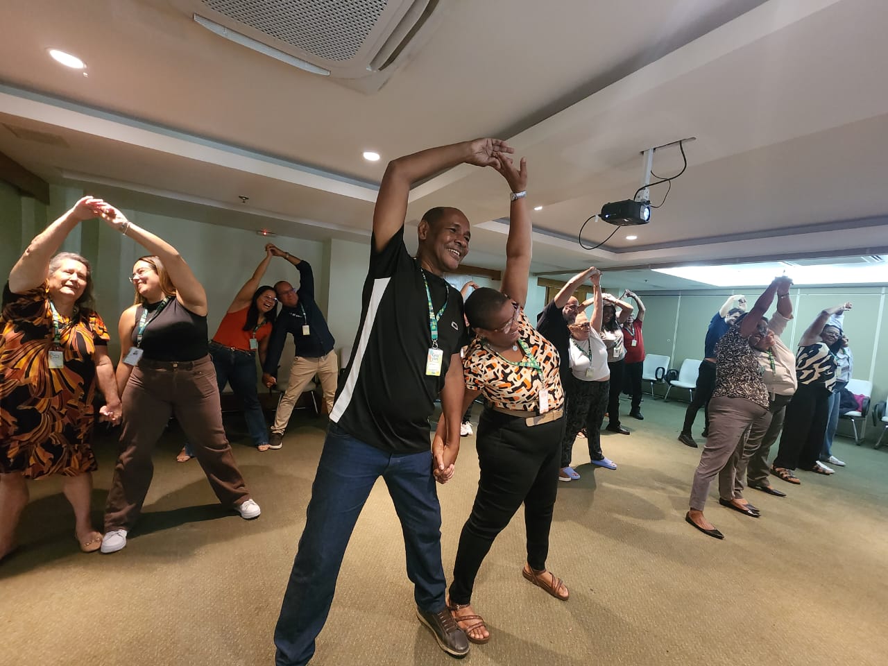 Ao longo da programação, a fisioterapeuta da operadora, Cintia Barreiros, realizou uma aula de alongamento com os dois grupos, com o objetivo de relaxar e melhorar a consciência corporal dos participantes. O cronograma foi planejado para estimular a criatividade e promover a interação. Uma novidade desta edição, foi a visita da Trupe CuradoRia, grupo de palhaçaria, que quinzenalmente visita o Hospital Unimed Ferj, e prestigiou o evento brincando com as crianças e adolescentes, percorrendo os setores e interagindo com os colaboradores.