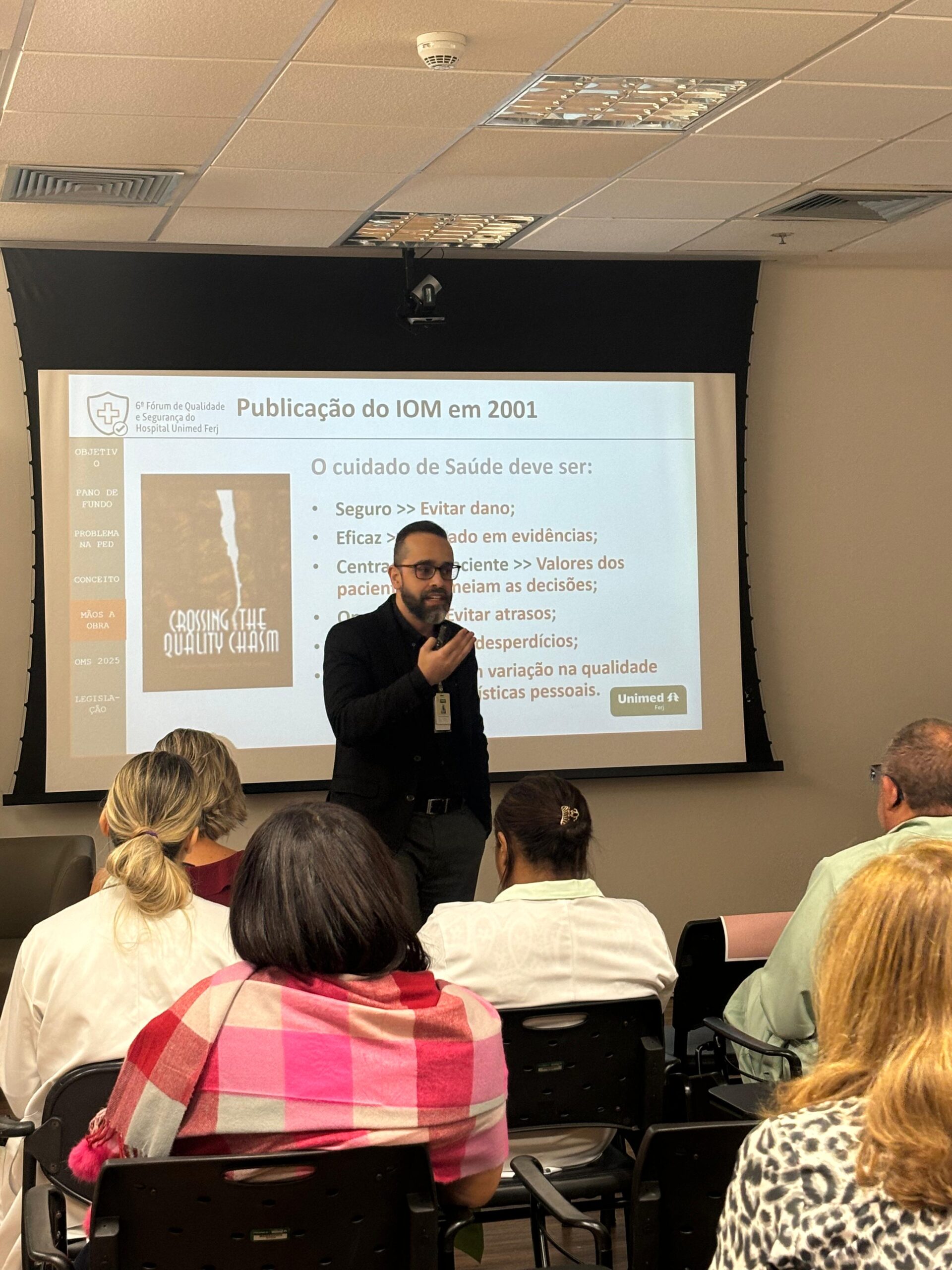 No dia 13 de novembro, o Hospital Unimed Ferj realizou o 6° Fórum de Qualidade e Segurança, um encontro dedicado ao compartilhamento de boas práticas e ao fortalecimento da cultura de melhoria contínua no cuidado ao paciente. O evento reuniu cerca de 100 colaboradores de diversas áreas, promovendo integração, diálogo e aprendizado no ambiente do auditório do HU.