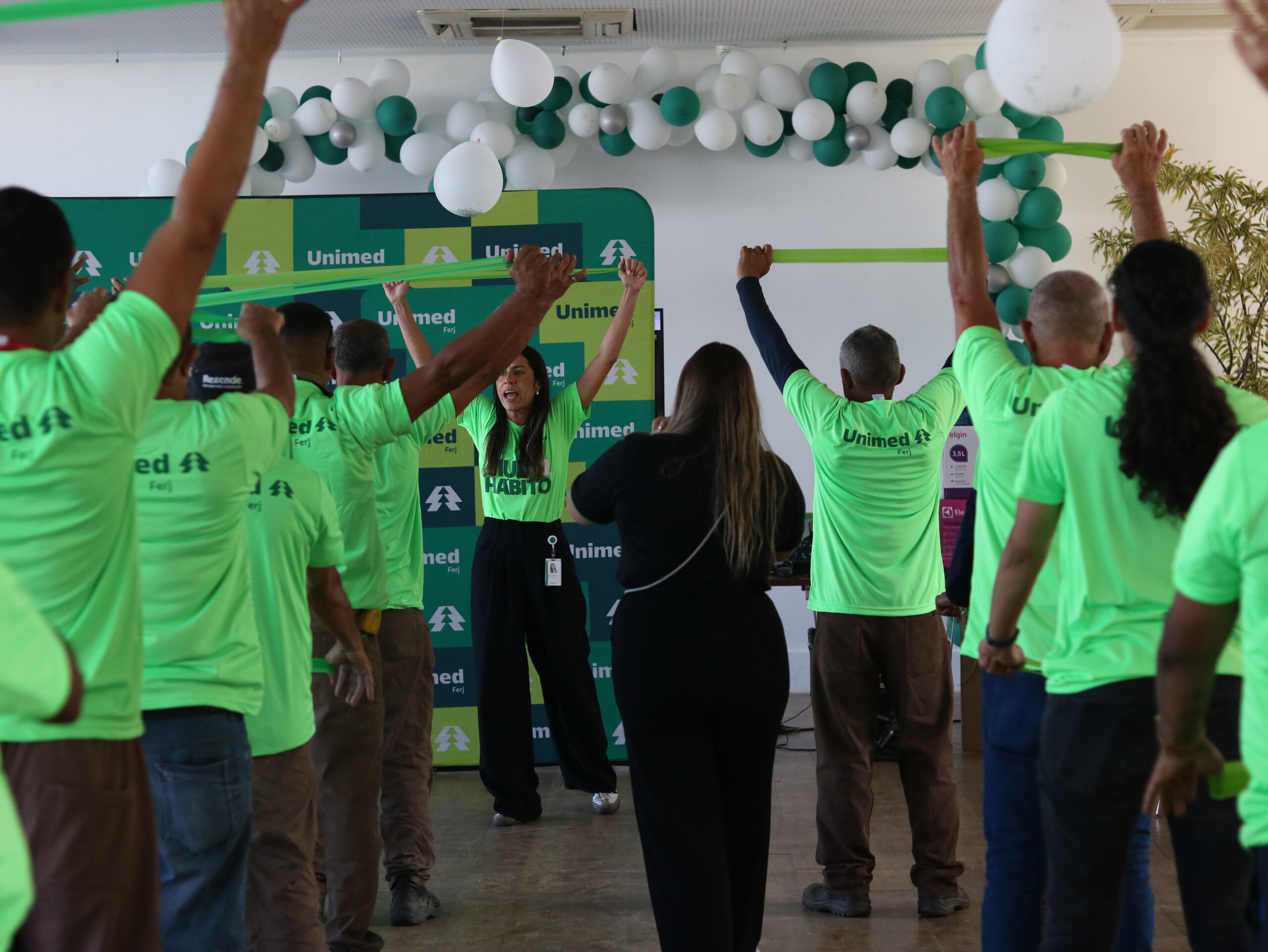 Outra iniciativa junto ao parceiro, foi a ação de Mude1Hábito com aulão de alongamento e fortalecimento, conduzido pela fisioterapeuta da cooperativa, Cíntia Barreiros, com foco na promoção da saúde, prevenção e incentivo à qualidade de vida dos colaboradores da instituição. O Mude1Hábito é um movimento do Sistema Unimed que convida as pessoas a adotarem pequenas mudanças no dia a dia, gerando grandes transformações na saúde e no bem-estar.