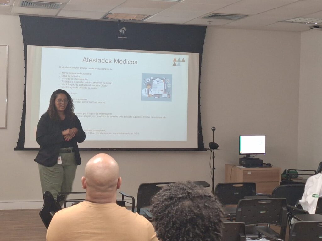 A apresentação foi conduzida pela analista de Gestão de Pessoas da sede administrativa, Emanuelle Praxedes, em conjunto com a analista de RH da unidade, Elayne Silva, com o objetivo de compartilhar os resultados da pesquisa, promover transparência e fortalecer o diálogo com os colaboradores.